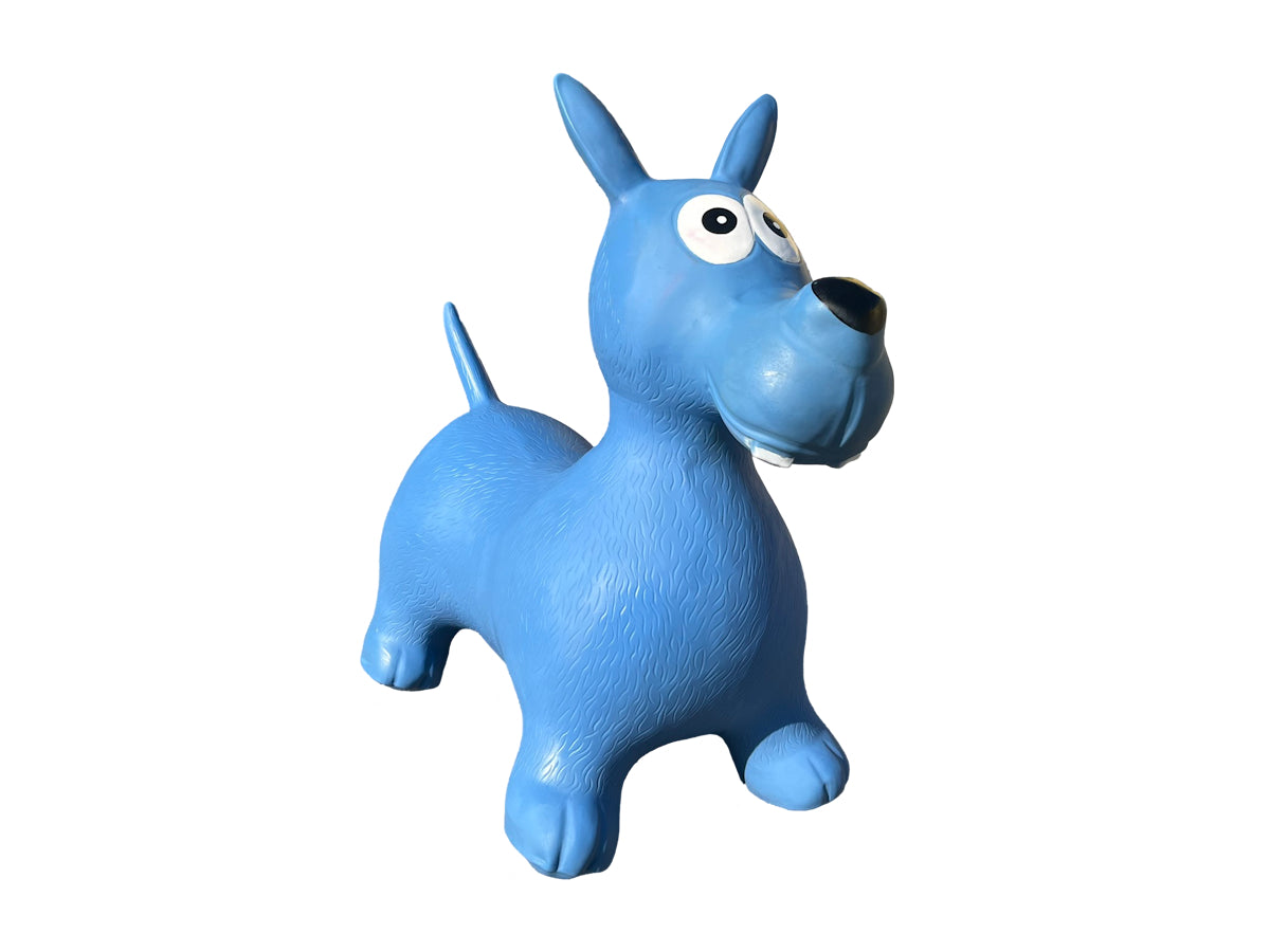 Animaletto gonfiabile cavalcabile modello Blu Dog di dimensioni maggiorate estremamente morbido, della linea "Soft Play", viene realizzato con materiali certificati e a norma.