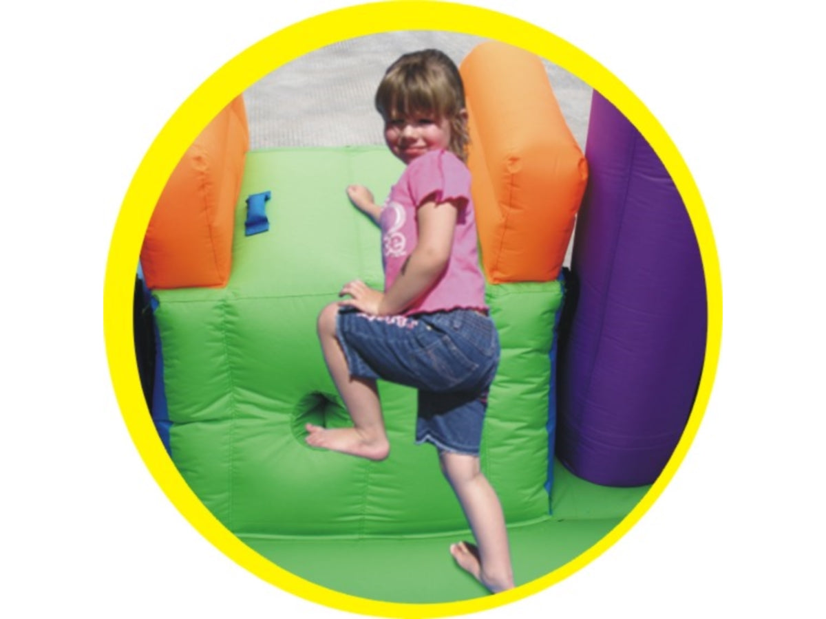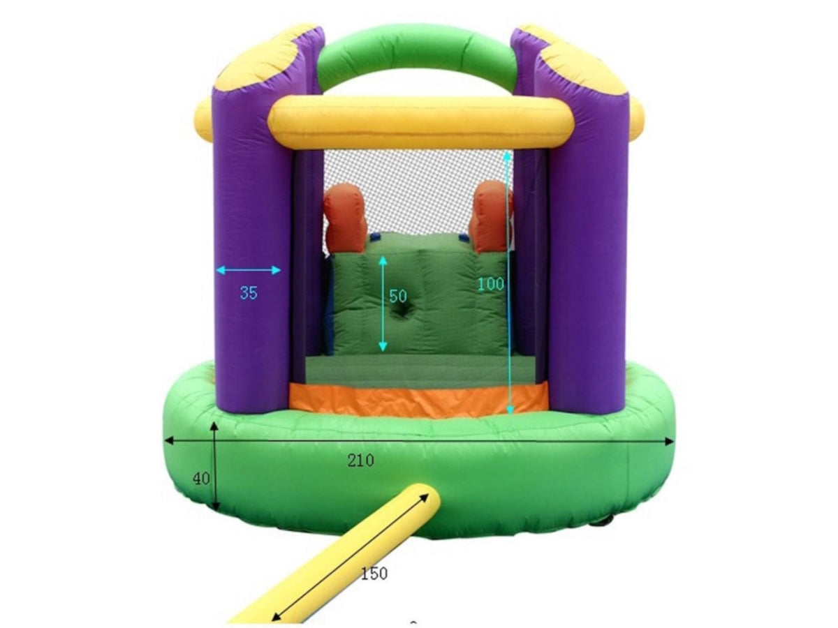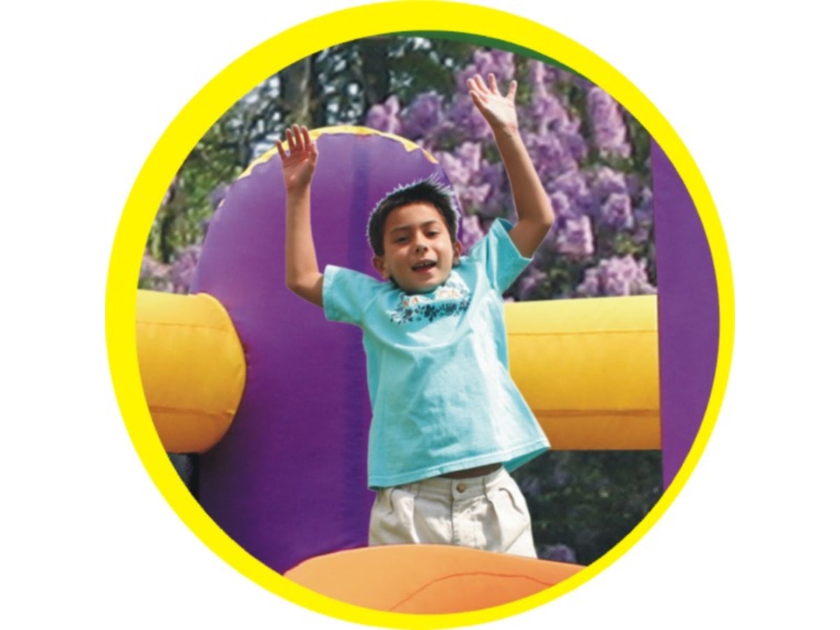 Gonfiabile per uso residenziale con zona salto e scivolo adatto per ambienti interni ed esterni, si gonfia in meno di un minuto.