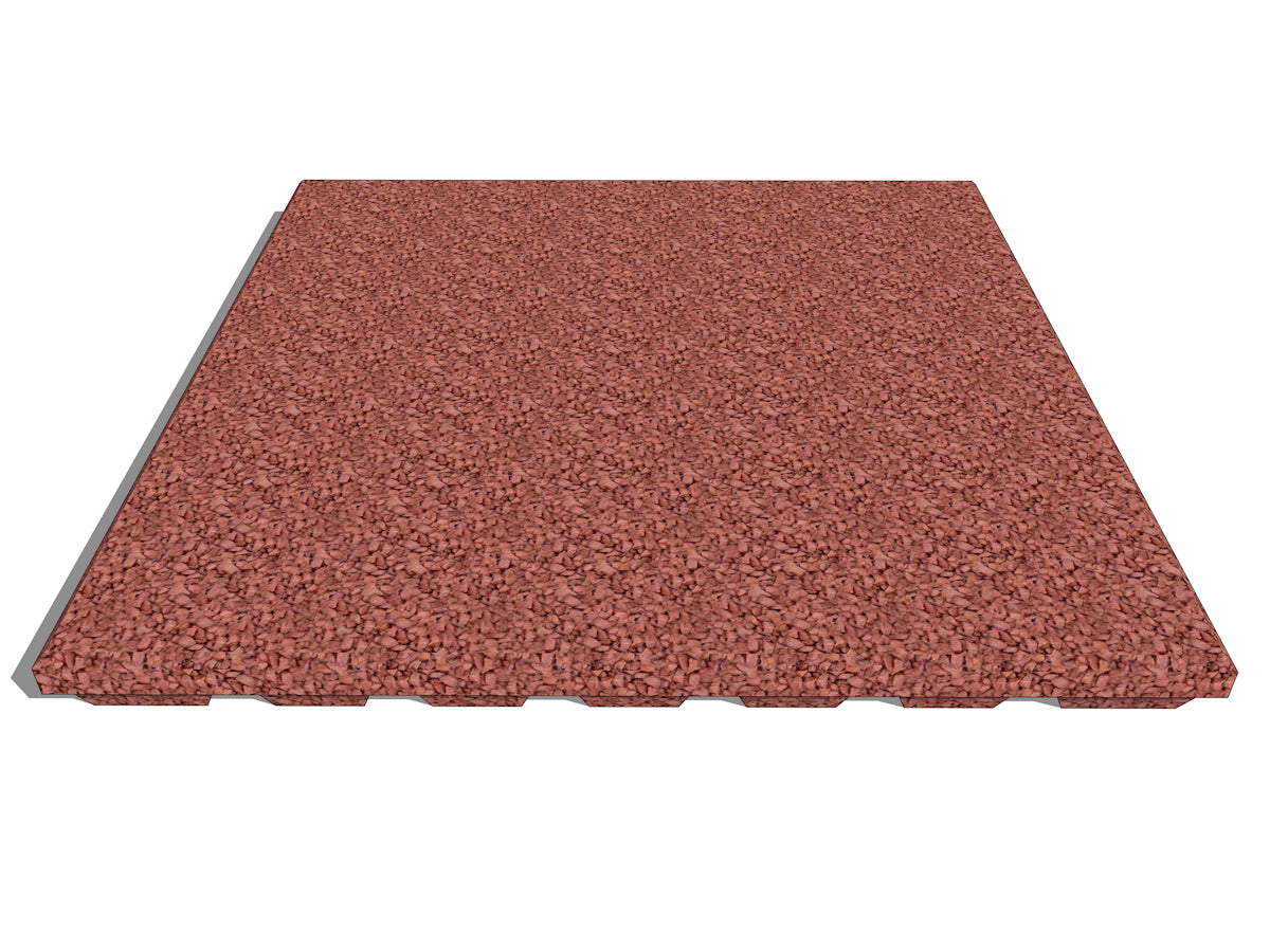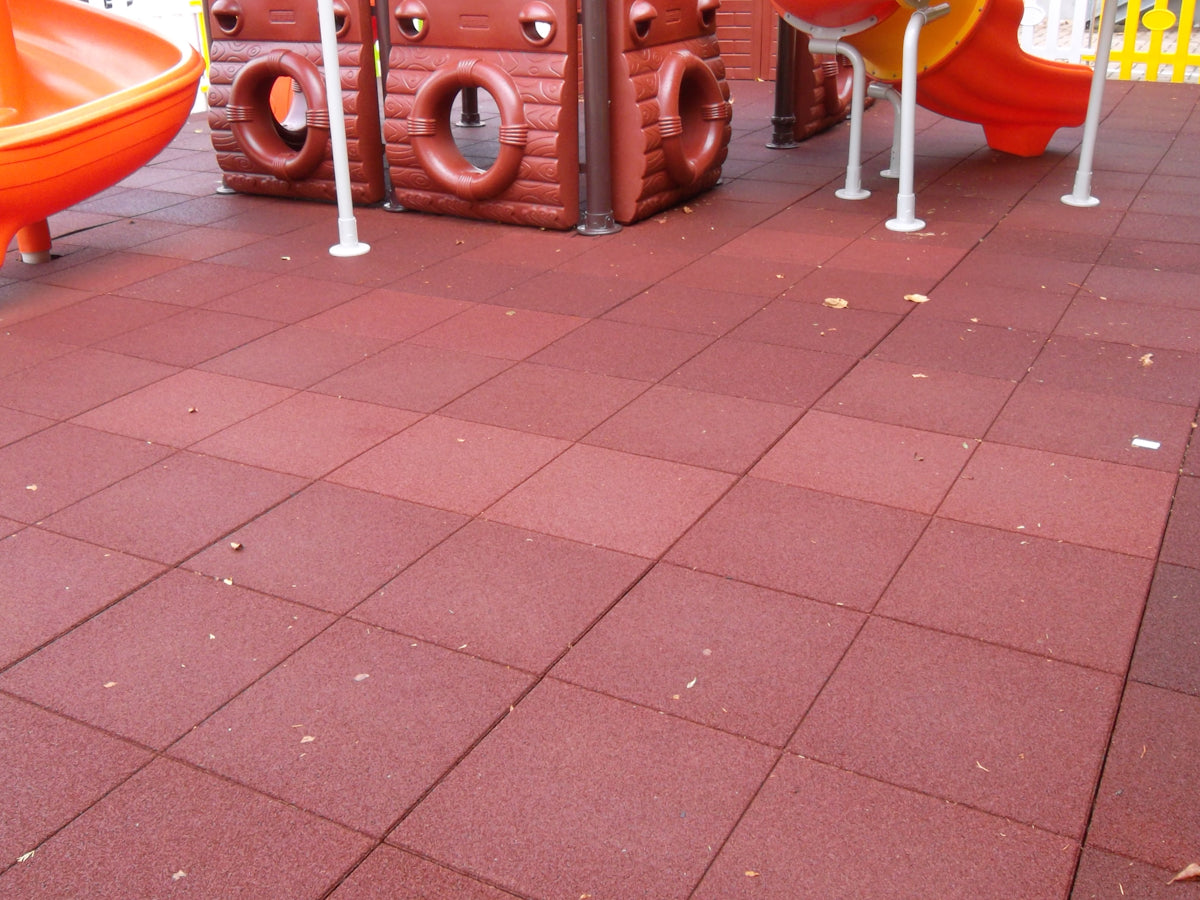 Pavimentazione antitrauma da esterno in gomma riciclata di colore rosso, conforme alla normativa UNI EN 1177.