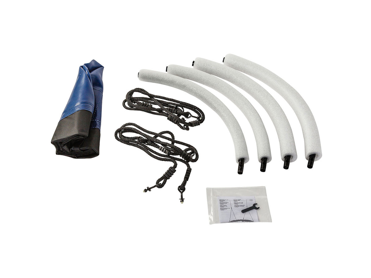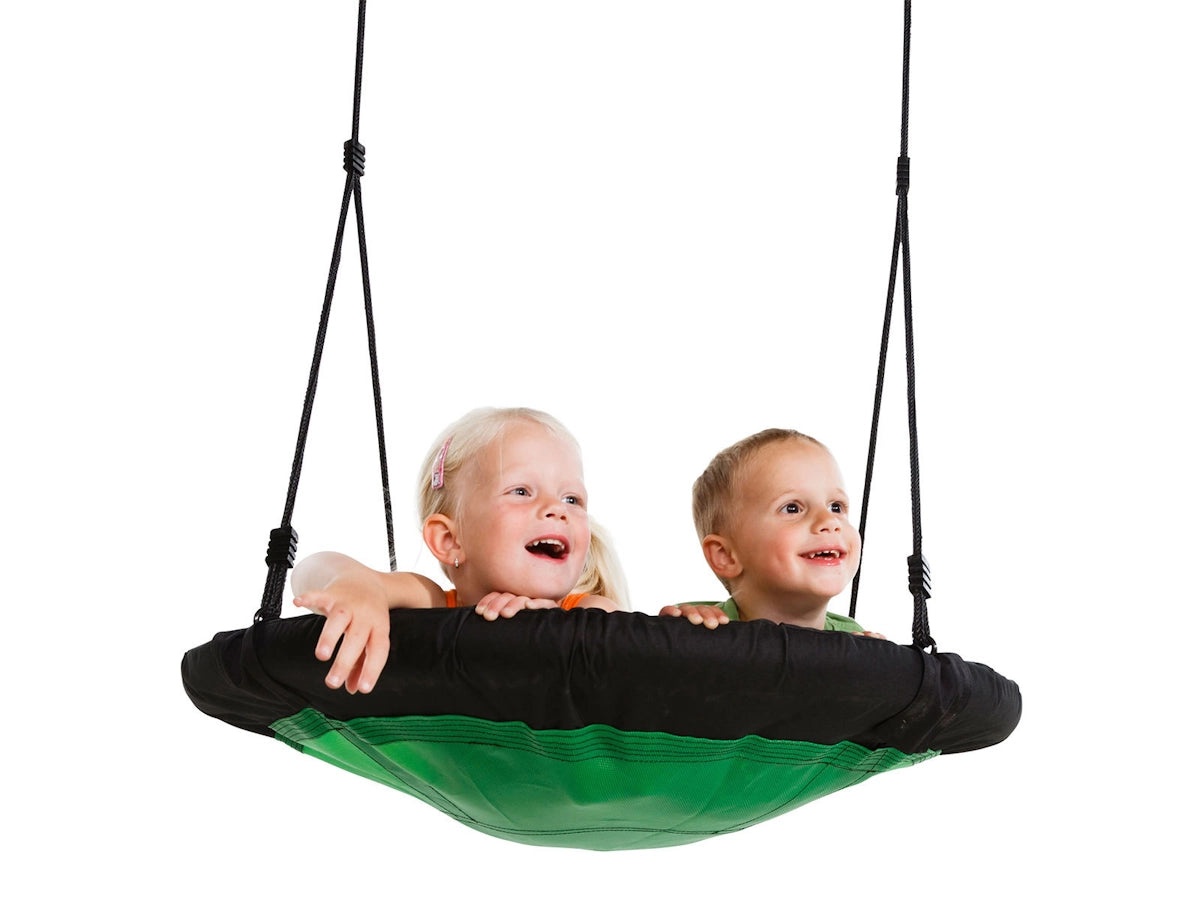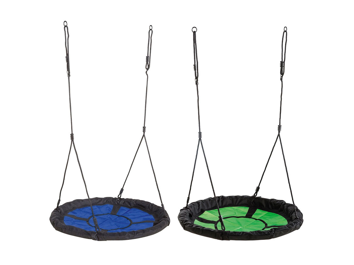 Seduta a cestone per uso residenziale, realizzata in tessuto idrorepellente. Le corde sono regolabili e si consiglia di posizionare il sedile su una trave a un'altezza compresa tra 2,00 e 2,40 metri da terra.
