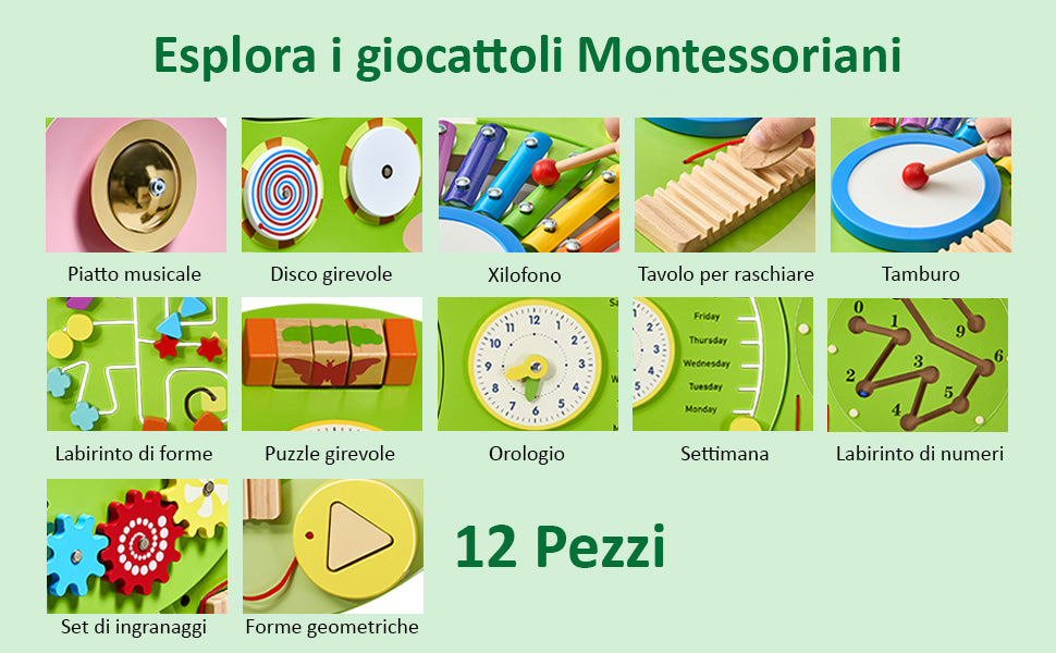 Bellissimi pannelli gioco Montessoriani smart learning, realizzati in legno, progettati per bambini 3-12 anni.